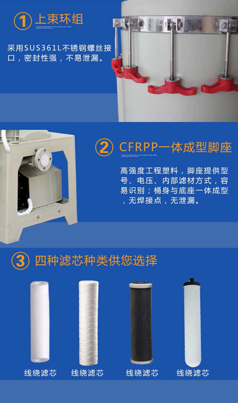 電鍍液過濾機特點: 1、過濾機主體及各重要零件,均采PP塑鋼材料一體成型開模生產,達到焊接點少、防漏液性佳的 點,及具有耐高溫、耐酸堿等特性。 2、安 開關保護裝置,當馬達過載或單相運轉時,安 開關層自動切斷電源。 3、馬達防護罩,確保馬達在酸氣中不易受腐蝕。 4、高精制過濾、過濾面積廣、效率高、操作簡單、清洗容易。 5、可依客戶選擇不同濾材之變化,另可加裝活性碳快速攪拌循環回路處理裝置,操作簡單。 6、附底閥1個,PVC視流器1個,依客戶選擇PVC或PP法蘭1組。 7、另有鈦金屬束環組可供選擇。 電鍍液過濾機參數表: